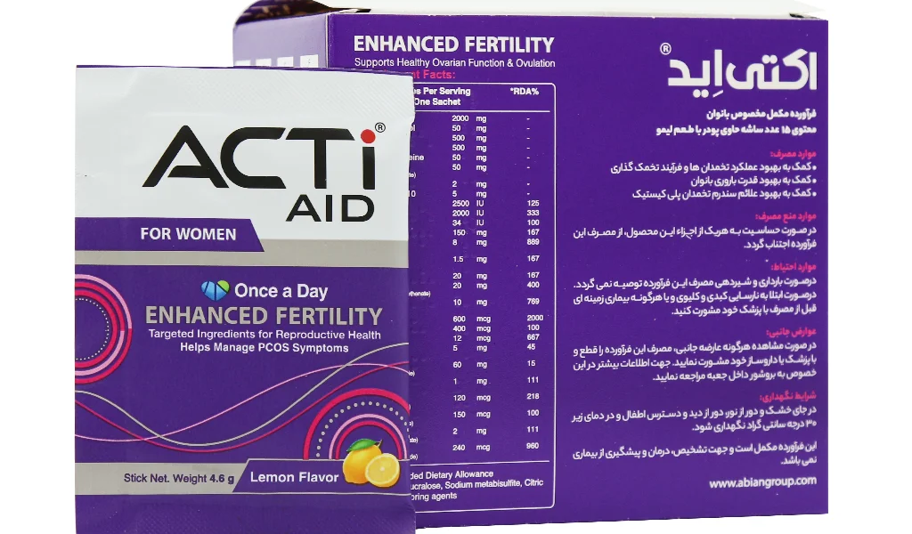 ساشه اکتی اید بانوان ابیان دارو یک مکمل تغذیهای برای بانوان است که به طور ویژه برای حمایت از سلامت باروری طراحی شده است. این محصول به بهبود عملکرد تخمدانها و تسهیل فرایند تخمک گذاری کمک مینماید. ساشه اکتی اید بانوان با ترکیبات منحصر به فرد خود به زنان در بهبود قدرت باروری و مدیریت علائم سندرم تخمدان پلی کیستیک کمک شایانی میکند. این مکمل به ویژه برای کسانی که به دنبال تقویت سلامت تولید مثل خود هستند، توصیه میشود.