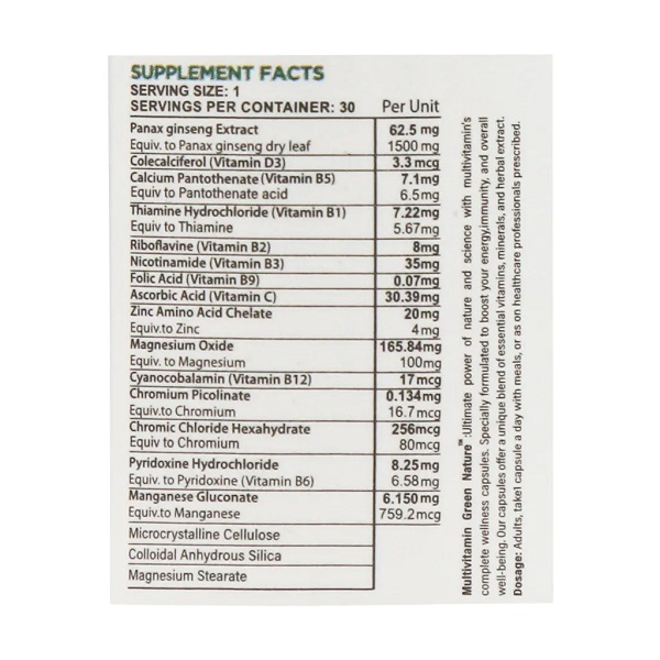 کپسول مولتی ویتامین گرین نیچر 30 عدد