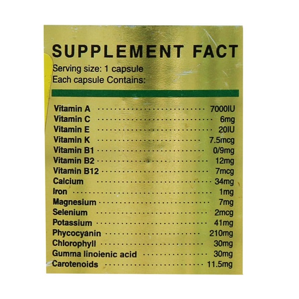 کپسول اسپیرولینا سوپر گرین زرین دارو با داشتن ترکیبات مغذی و چمشگیر از پودر جلبک اسپیرولینا به همراه ویتامینها و مواد معدنی مختلف، توانسته گام مهمی جهت سلامت عمومی بدن بردارد. از دیگر ترکیبات موجود در این مکمل میتوان به ویتامین E، C، A و کلسیم، آهن، منیزیم، سلنیوم و ... اشاره کرد که هر یک به نحوی در حفظ عملکرد طبیعی بدن و بهبود وضعیت تغذیه ای دخیل هستند. پروتئینهای موجود در اسپیرولینا به سرعت جذب میشوند و به دلیل داشتن دیوارههای سلولی غیر سلولزی، جذب مواد مغذی را تسهیل میکند. اسیدهای آمینه و مواد مغذی دیگر در قرص جلبک به سرعت وارد جریان خون شده و در دسترس بافتها قرار میگیرد. اسپیرولینا حاوی فیکوسیانین و کلروفیل است که نه تنها به آن رنگ زیبایی میبخشد، بلکه با خاصیت آنتی اکسیدانی در پیشگیری از آسیبهای سلولی ناشی از رادیکالهای آزاد نقش مهمی ایفا میکند. از طرفی گاما لینولنیک اسید و کاروتنوئیدها به کاهش التهاب و تقویت سیستم ایمنی بدن نیز کمک میکند و مصرف آن سلامت عمومی بدن را بر عهده دارد.